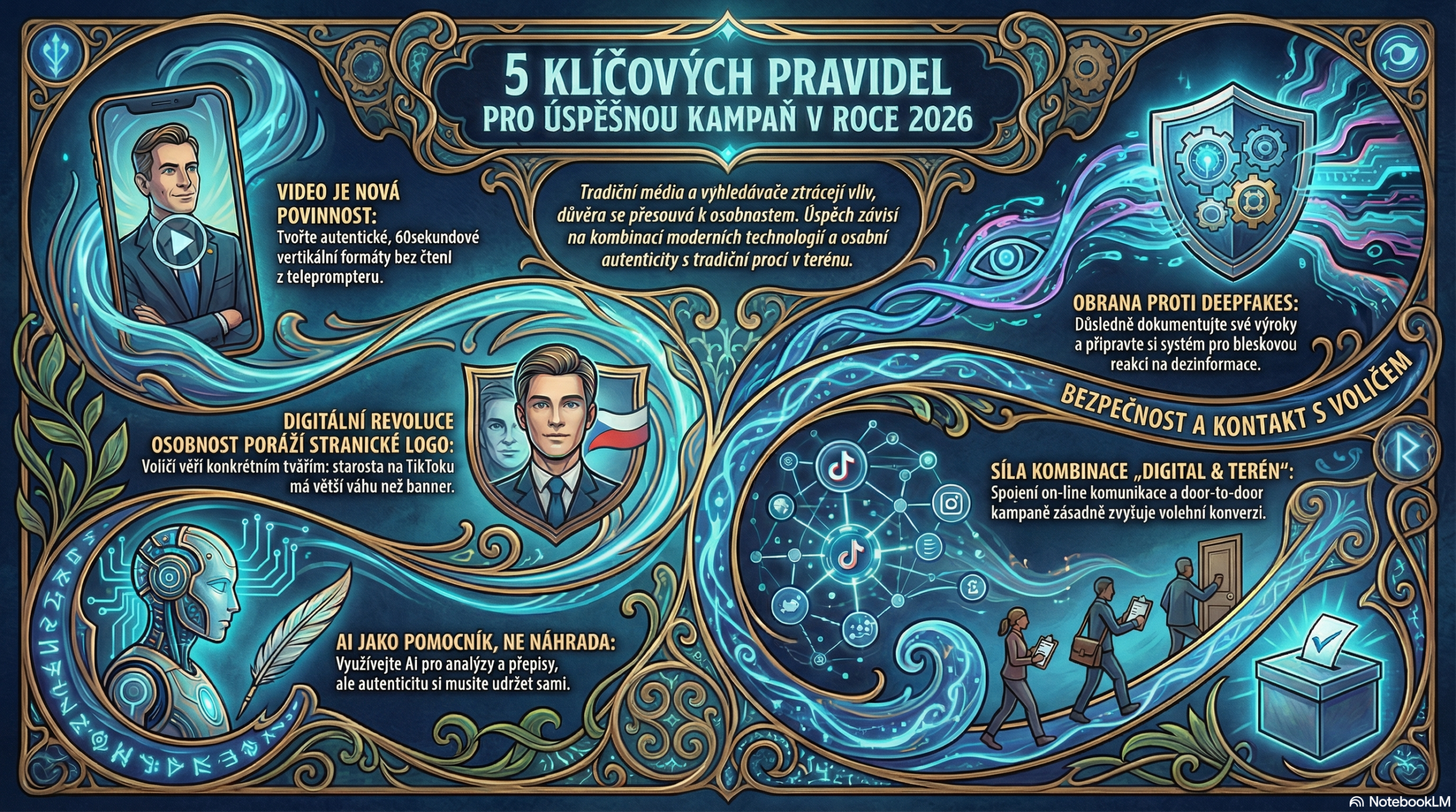 Rok 2026 rozhodne, kdo pochopil změnu. Kdo si myslí, že stačí tisková zpráva a billboard, prohraje. Kdo natočí sám sebe, jak mluví o skutečných problémech skutečných lidí — ten má šanci.